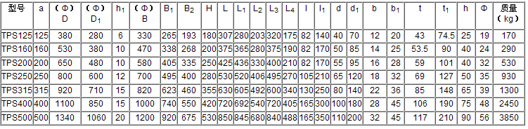 | TPS | 第一系列 | 125 | — | 160 | — | 200 | — | 250 | — | 315 | — | 400 | — | 500 |