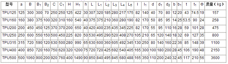 | TPU | 第一系列 | 125 | — | 160 | — | 200 | — | 250 | — | 315 | — | 400 | — | 500 |