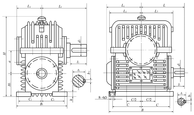 PWU80-PWU355、型平面二次包絡(luò)環(huán)面蝸桿減速器主要尺寸